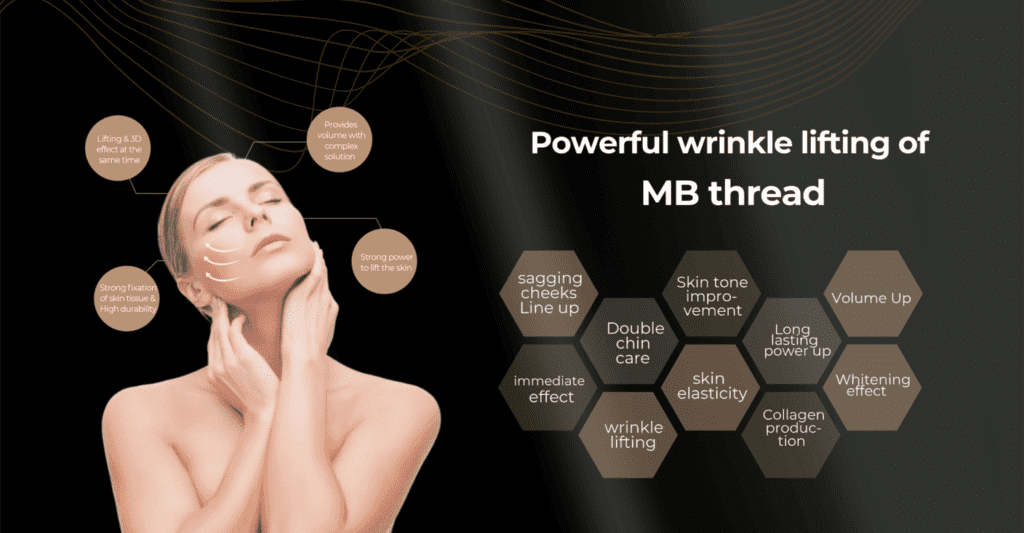 Experience the revolutionary MB thread-lifting mask designed to lift sagging skin and redefine facial contours. This unique formula harnesses the power of medical-grade PCL from Evonik, Germany, combined with skin-like triple helix collagen and 100% natural silk amino acids. Reconstruct your skin’s moisture barrier with Ceramide NP, preventing moisture loss and promoting overall skin health.